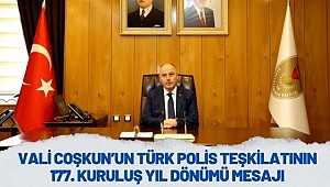 Vali Coşkun yayınladığı mesajda şunları söyledi: “Ülkemizin huzur ve güvenliğini sağlayan, vatandaşımızın can ve mal güvenliğini koruyan, devletimizin bölünmez bütünlüğünü hedef alan tehdit ve tehlikelere karşı mücadele eden, gücünü yasalardan, desteğini de halktan alan Türk Polis Teşkilatımızın 177. Kuruluş yıl dönümünü kutluyorum.