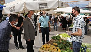 Vali Coşkun, ziyaretlerde bulundukları Semt Pazarlarında vatandaşlarımıza ve esnaflarımıza maske, sosyal mesafe ve temizlik kuralları konusunda hatırlatmalarda bulundu.