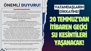 20 Temmuz Pazar günü itibarıyla bazı mahallelere sadece günün belli saatlerinde, bazılarına ise belirli günlerde su verileceği bildirildi. Ballıca, Aslanbey, Şeyh Şamil, Sütçü İmam, Senem Ayşe, Duraklı, Şeyhadil, Bayazıtlı, Yeşiltepe, Sarıkaya, Dereli, Yenikent, Kavlaklı, Kazım Karabekir, Ceyhan, Hasancıklı ve Kılavuzlu mahallerine sabah 06.00 ile akşam 20.00 saatleri arasında düzenli su verileceği açıklandı.