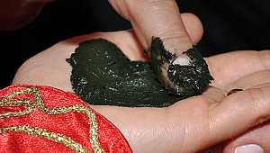 içinde suyla karıştırılarak, kıvamını alması sağlanıyor. İyice yoğurulan kına