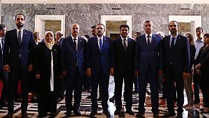 milletvekillerine rozetlerini taktı. Milletvekilleri, Meclis çalışanlarına ve