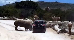 Meksika'da Puebla şehrinde bulunan safari parkını gezmeye gelen bir ailenin aracına saldıran sinirli gergedan turist kamerasına böyle yansımış.