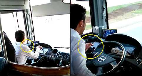 Yol boyunca cep telefonu ile oynayan otobüs şoförü yolcuların hayatını hiçe saydı. Otobüs şoförünün bu halleri bir yolcu tarafından kaydedildi.