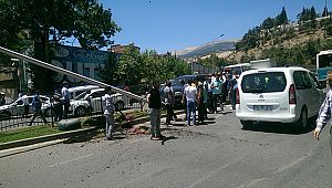 virajı alamayınca direğe çaprtı. Refüjde ki direk yamulurken, araçta hafif