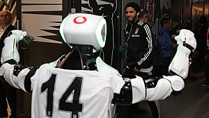 inen Beşiktaşlı futbolcuları karşılayarak onlarla "çak" yapan Robot
