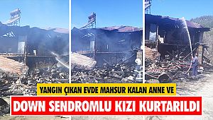 Yangın nedeniyle mahsur kalan anne Fatma ve down
