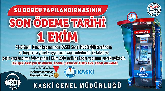 KASKİ veznesi saat 16.00’a kadar hizmet veriyor.