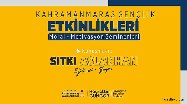 Büyükşehir Belediyesi tarafından düzenlenen moral ve motivasyon seminerlerinin son gününde Eğitimci - Yazar Sıtkı Aslanhan, saat 10.00’da Mehmet Akif Ersoy Kültür Merkezi’nde öğrencilerle bir araya gelerek sınav sürecinde moral ve motivasyonu yükseltme, daha verimli ders çalışma ve sınav sürecini iyi yönetme gibi konularda öğrencilere faydalı bilgiler aktaracak. Yazar Aslanhan, saat 13.30’da ise Göksun Arslanbey Millet Konağı’nda moral ve motivasyon seminerinde Göksunlularla bir araya gelecek.