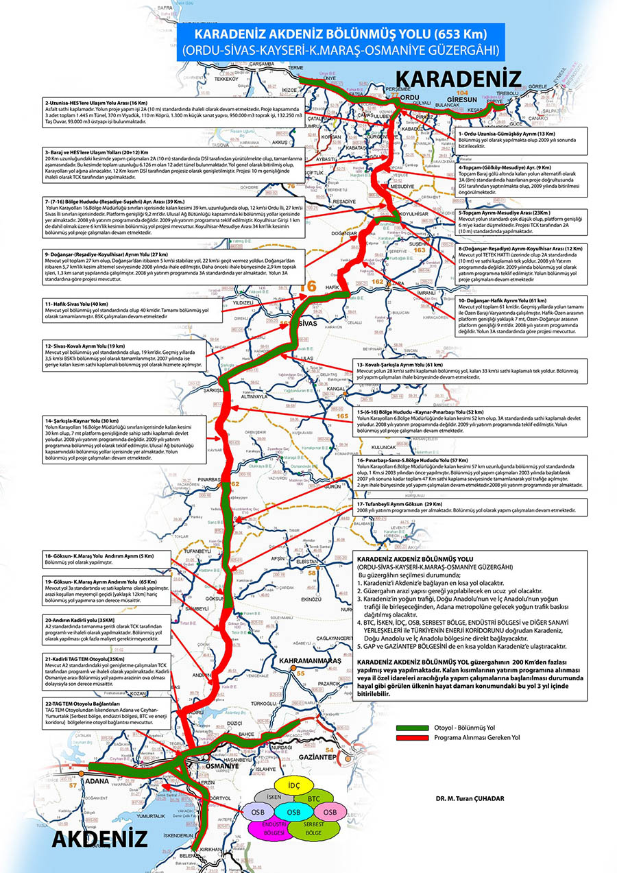 Karadeniz-Akdeniz karayolu 40 tane ili ilgilendiriyor. Ama en çok Ordu, Sivas,