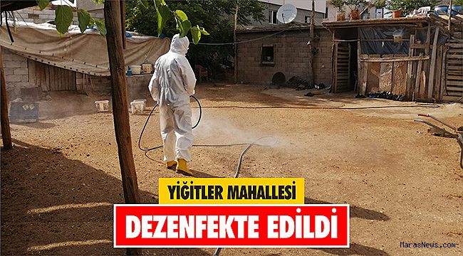 kapsamında karantina altına alınan Pazarcık İlçesi Yiğitler Köyü’nde dezenfekte