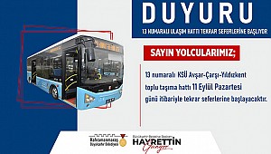 Şehirde toplu ulaşımı iyileştirmek için çalışmalarını sürdüren Kahramanmaraş Büyükşehir Belediyesi, 6 Şubat depremleri sonrası hizmetten kaldırılan 13 numaralı KSÜ Avşar-Çarşı-Yıldızkent hattının tekrar seferlerine başlayacağını duyurdu. Yıldızkent’ten başlayıp; Sakarya Caddesi, Fetih Bulvarı, Azerbaycan Bulvarı, Şekerdere Caddesi, Alparslan Türkeş Bulvarı, Hanefi Mahçiçek Bulvarı, Prof. Dr. Necmettin Erbakan Bulvarı ve Turgut Özal Bulvarı güzergâhını takip ederek KSÜ Avşar Kampüsü’ne ulaşım sağlayacak hat, 11 Eylül Pazartesi günü itibariyle hizmete başlayacak. Büyükşehir Belediyesi’nden yapılan açıklamada, 13 numaralı hattın güzergâh ve hareket saatlerine https://kahramanmaras.bel.tr/toplu-tasima-guzergah-ve-saatleri internet adresi ve KahramanKart mobil uygulaması üzerinden ulaşılabileceği belirtildi.
