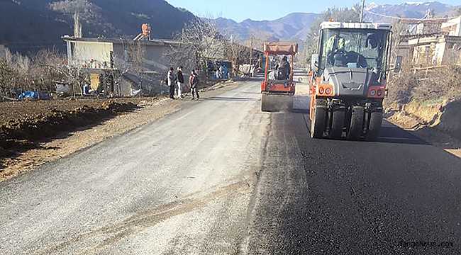 Dönüklü Mahallelerinin kullandığı Dadağlı Grup Yolunda sıcak asfalt serim