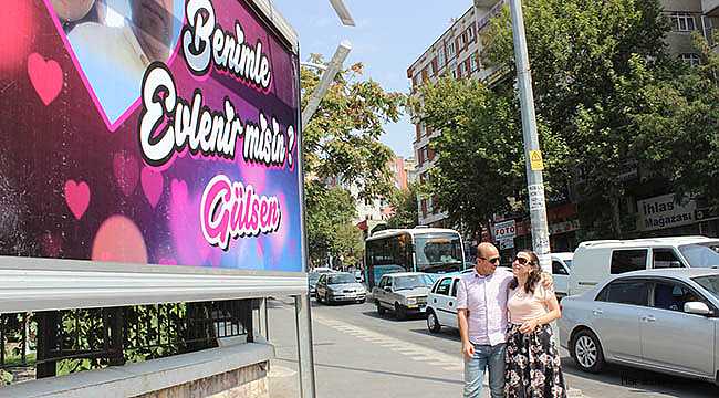 afişe “Benimle evlenir misin Gülsen?” yazdırdı. Evlilik teklifi için Cumartesi
