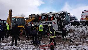 yakınlarında, 46 LK 100 ve 34 YK 8523 plakalı iki otobüs şarampole yuvarlanarak