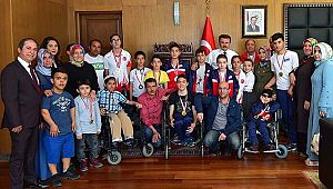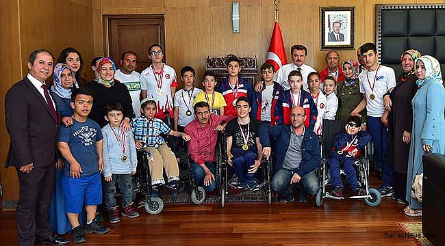 aileleri ile birlikte kabul eden Başkan Erkoç, şehrimize 33 madalya ile dönen