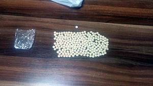 bölmelerinde 232 adet uyuşturucu hap ele geçirildi. uyuşturucu hapları satmaya