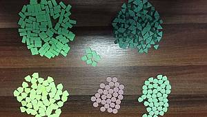 yapılan aramada satışa hazır 330 adet uyuşturucu hap ele geçirildi. haplarla