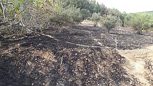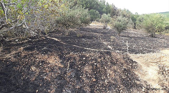 zeytin ağaçlarının bulunduğu alanda henüz belirlenemeyen nedenle yangın çıktı.