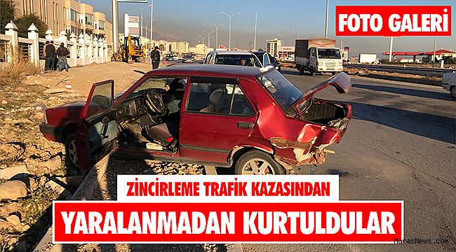 4 otomobilin karıştığı trafik kazasında 46 EL 302 plakalı kırmızı otomobil kaldırıma çıkarak kullanılamaz hale gelirken, sürücüler kazayı yara almadan atlattı. (AA)