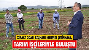 tarlasında çalışan işçileri ziyaret eden Çetinkaya, işçilerin sahada